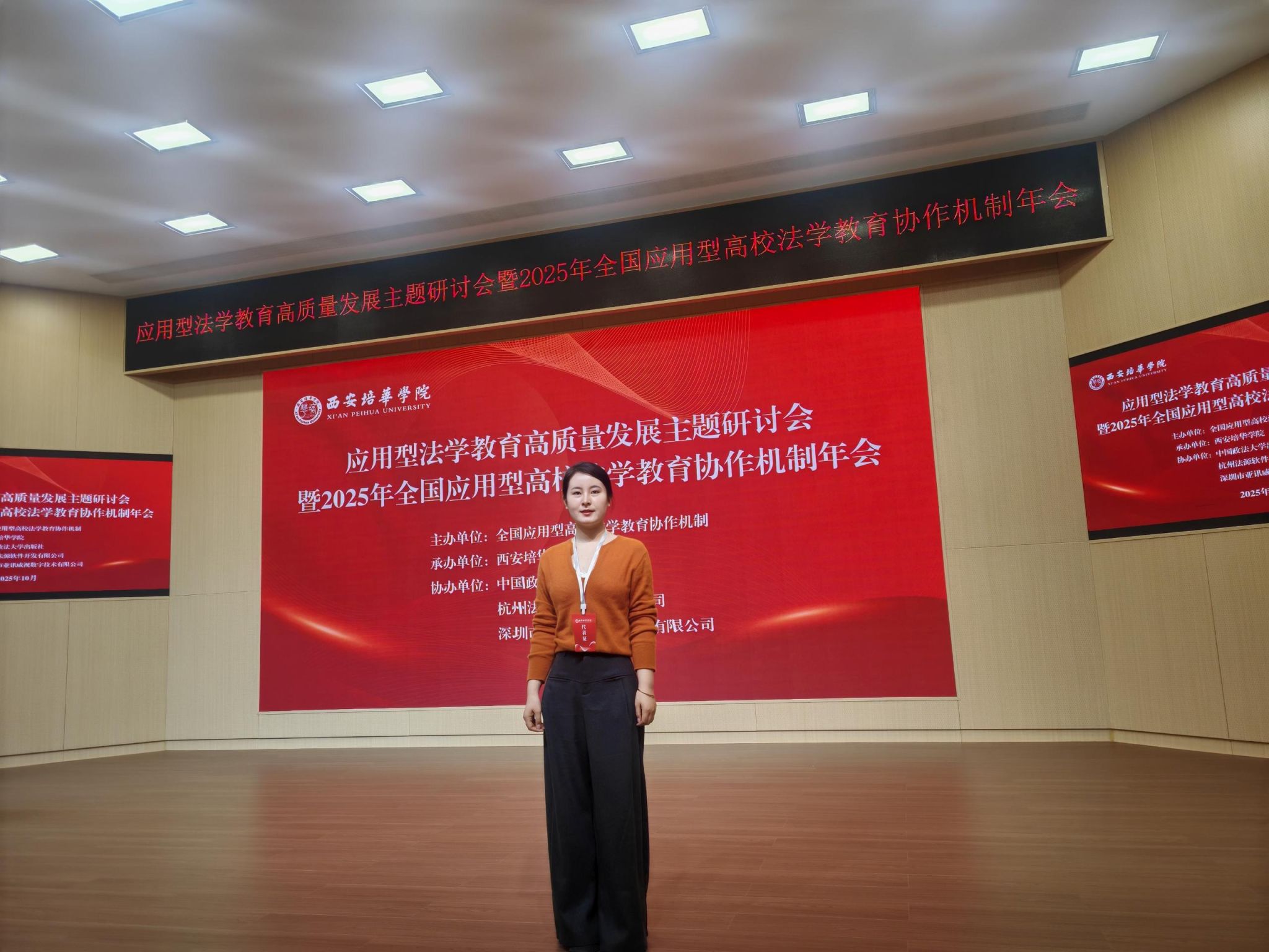 2025年10月18日,“应用型法学教育高质量发展主题研讨会暨2025年全国应用型高校法学教育协作机制年会”在西安顺利召开。我校行政管理学院法学教研室教师郝梦园、王梦真应邀参会,与来自全国多所高校的法学教育专家、实务界代表及行业精英围绕法学教育创新发展展开深度交流,精准把握应用型法学教育前沿动态。与此同时,我院郝梦园教师的参会论文“数智技术赋能下应用型法学教育的课程体系重构与实践路径研究”荣获参会论文一等奖。