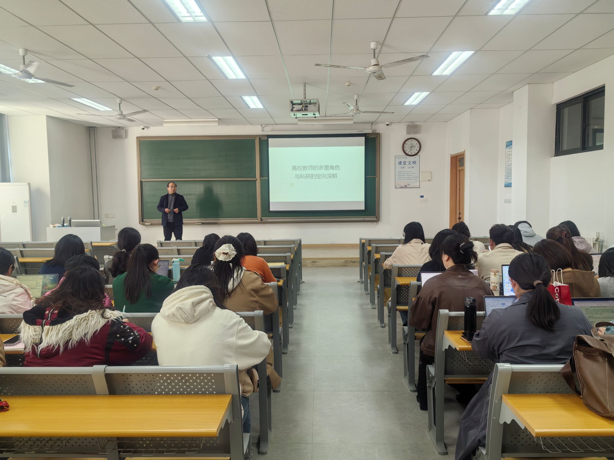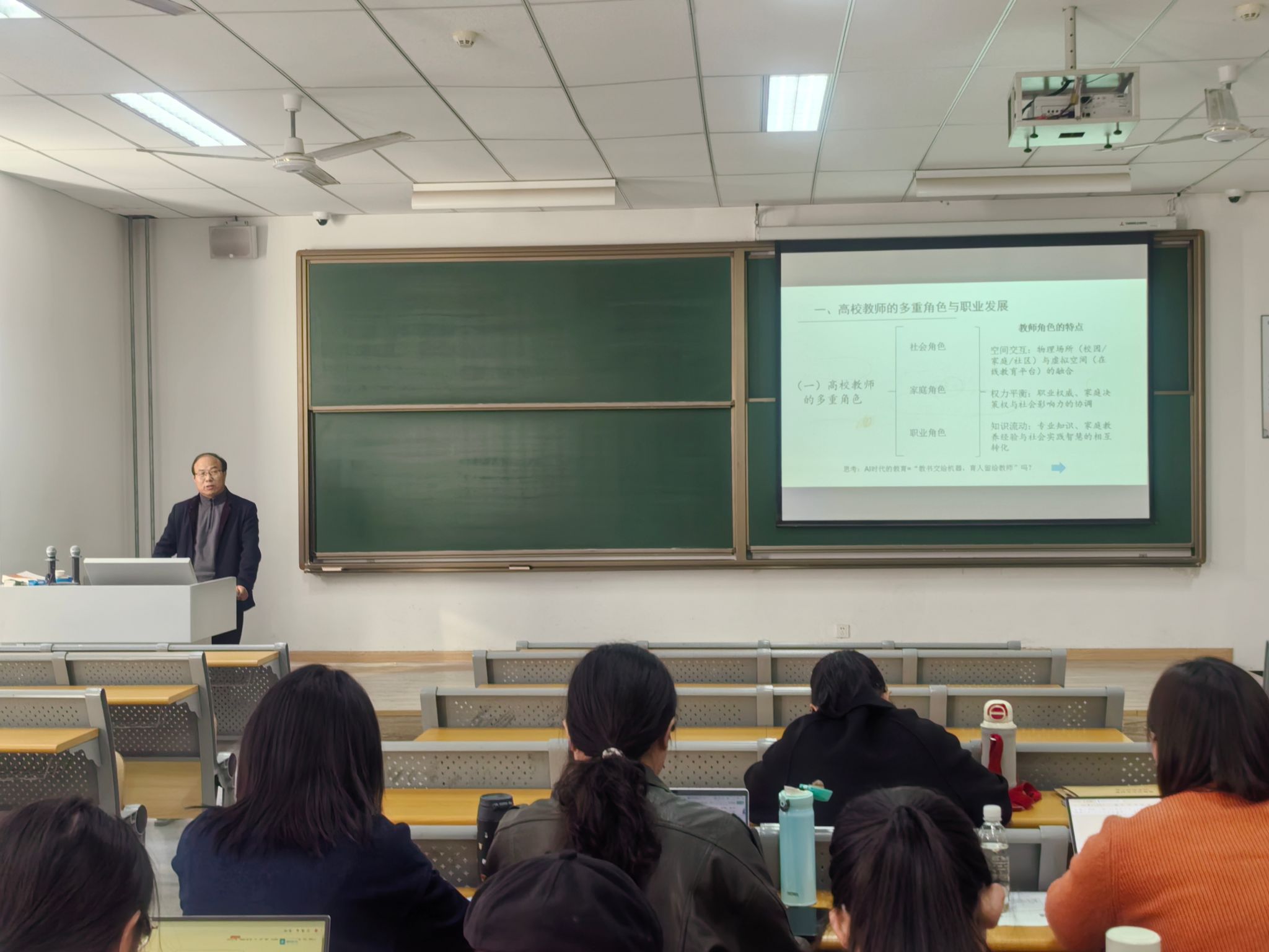 为全面贯彻党的教育方针,落实立德树人根本任务,聚焦学校内涵式、高质量发展,加强师德师风建设,提升教师教育教学能力,提高课堂教学质量。10月22日下午,行政管理学院在学院会议室开展以“高校教师的多重角色与科研的定向深耕”为主题的“强师赋能”教师培训。培训由郭笃凌教授主讲,学院领导班子成员、各教研室负责人及全体教师参加。