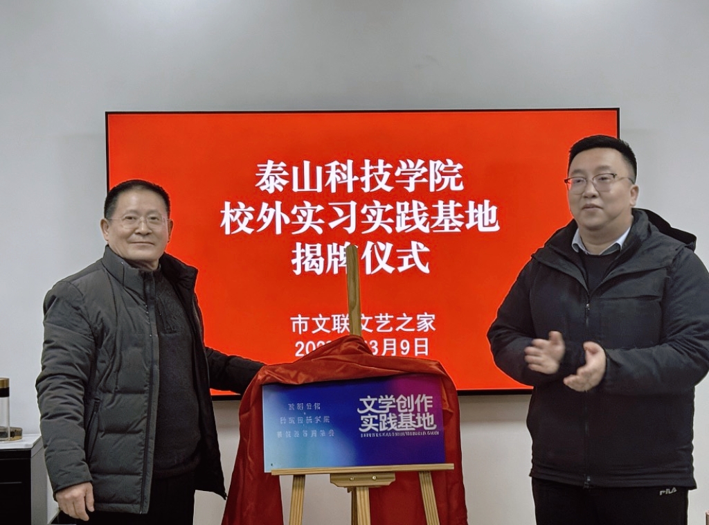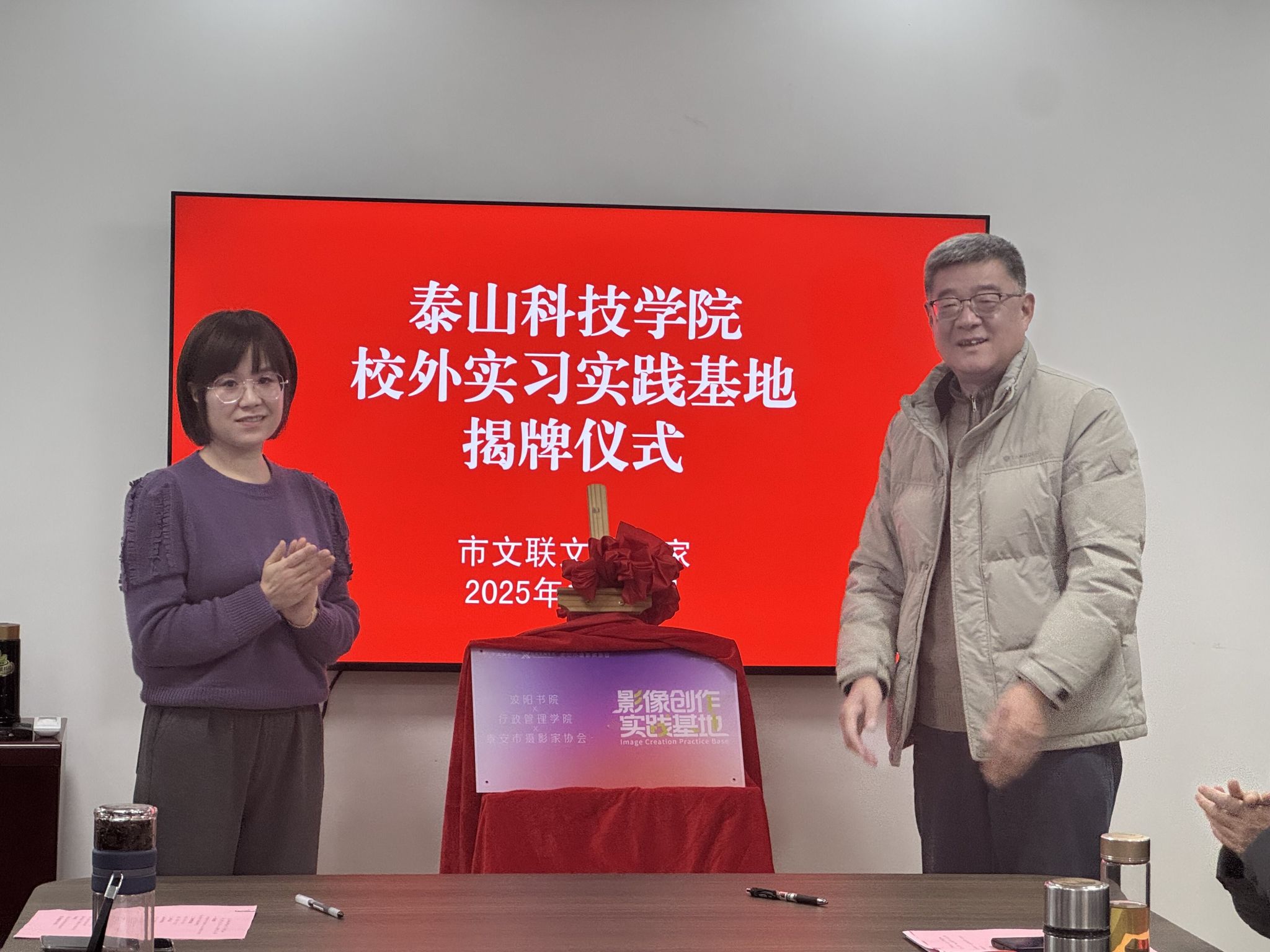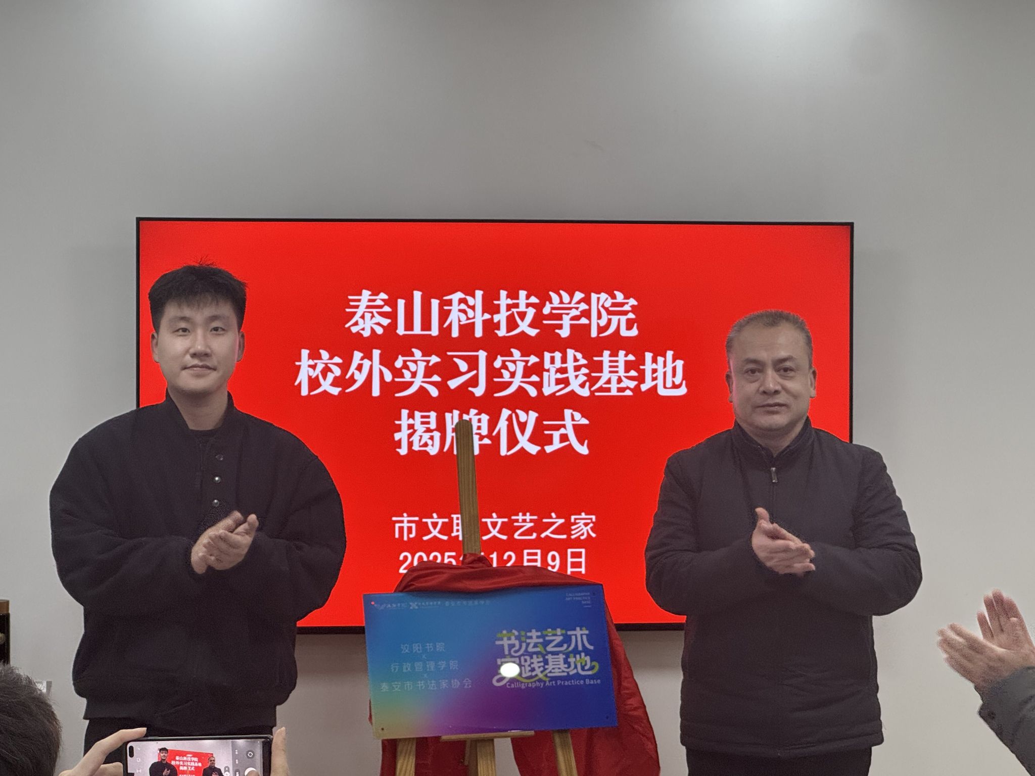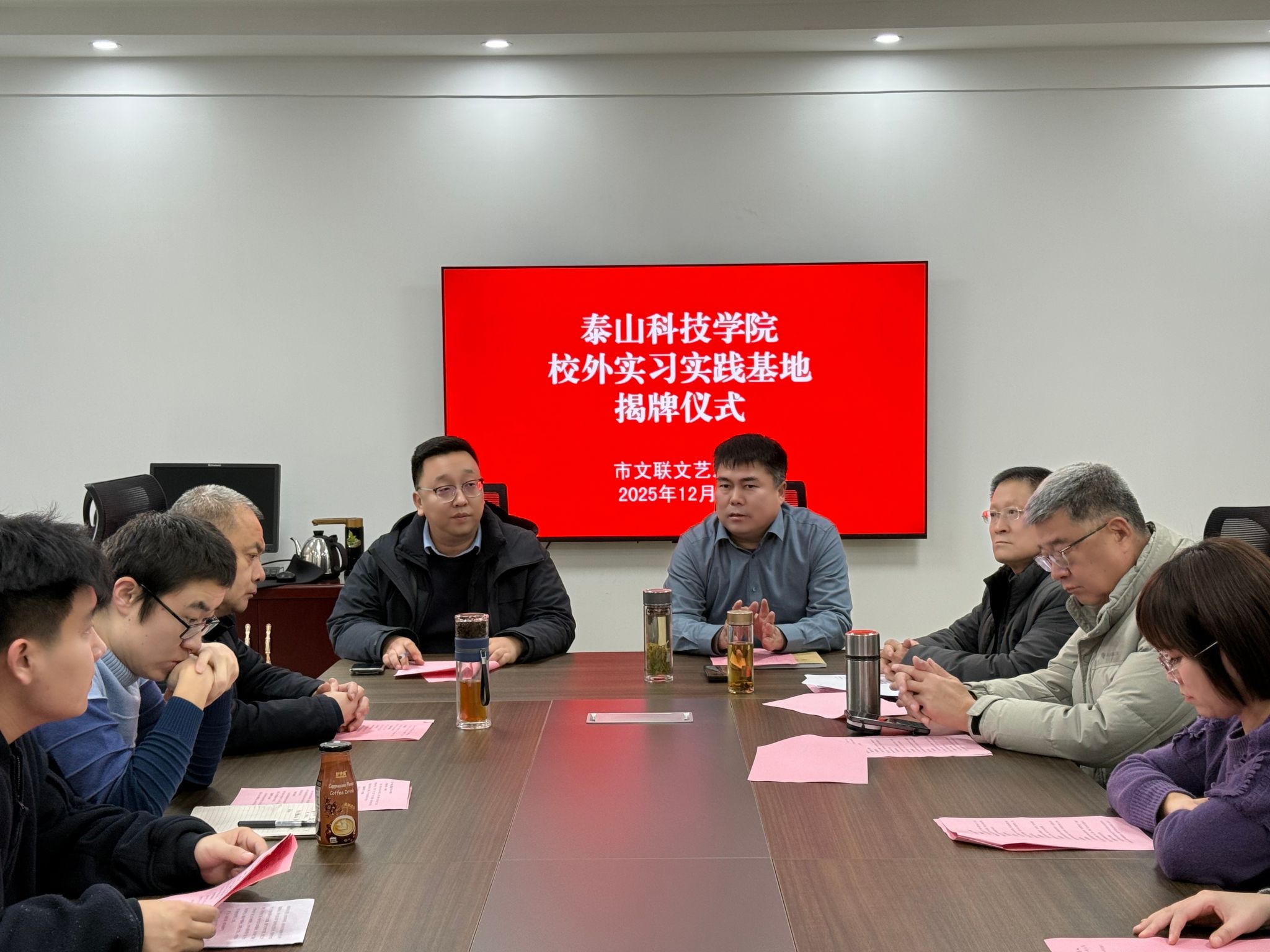 12月9日下午,泰山科技学院与泰安市文学艺术界联合会共建实习实践基地揭牌仪式在“泰安市文艺之家”举行。双方以“文化赋能实践・产教协同育人”为主题,共同打造“高校+文联+协会”三方共建平台,为泰科学子拓展专业化、多元化的文艺实践舞台,进一步深化产教融合与校地文化合作。