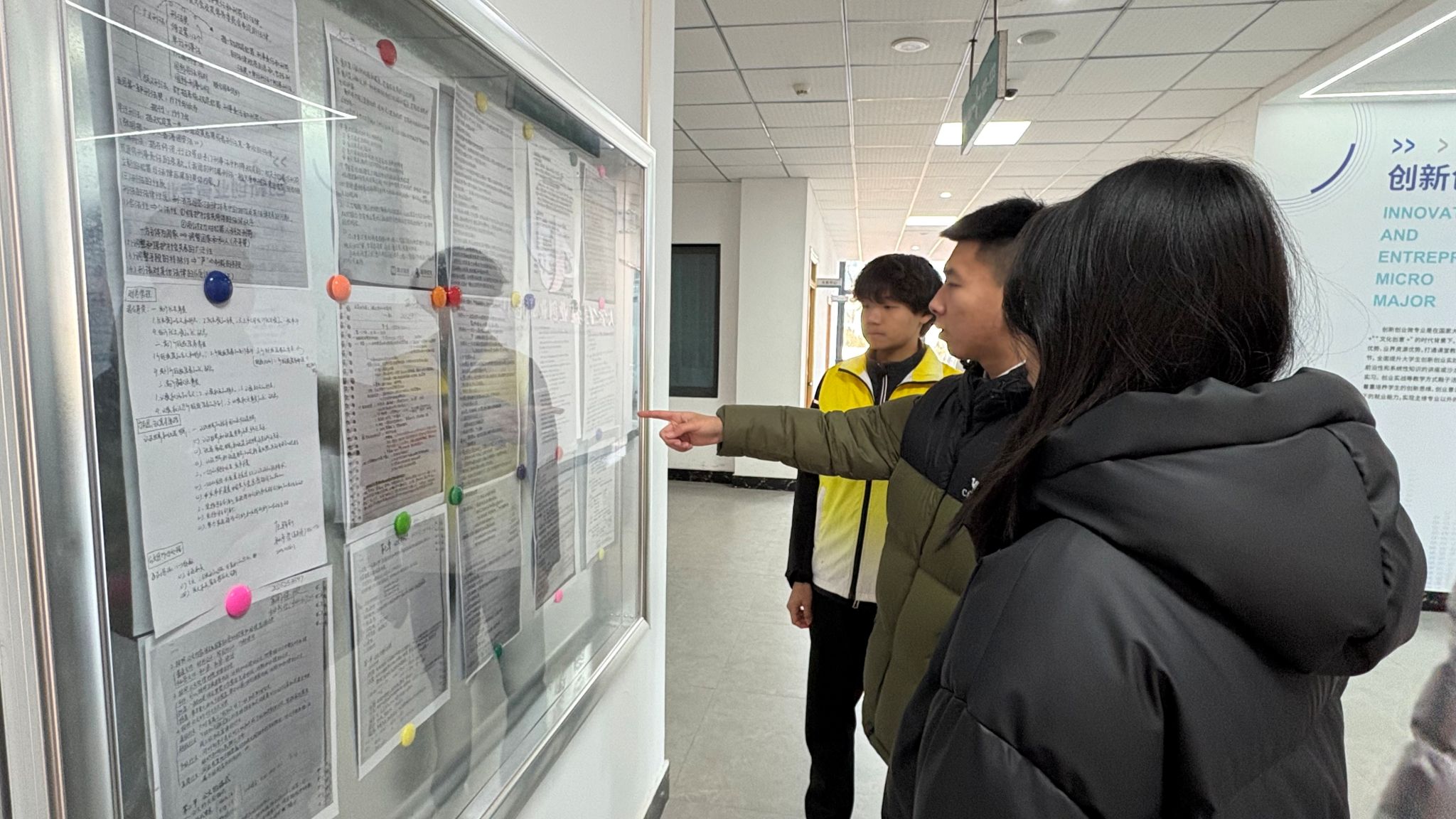 展示板前吸引了大批学子驻足,认真查看其中的知识点梳理和记录方法。不少同学拿出手机,拍下自己觉得实用的笔记页面,有的还和身边同学交流着观摩心得,探讨不同课程的笔记整理技巧。优秀笔记所传递的专注力量,让同学们深刻体会到笔记作为学习利器的实用价值。