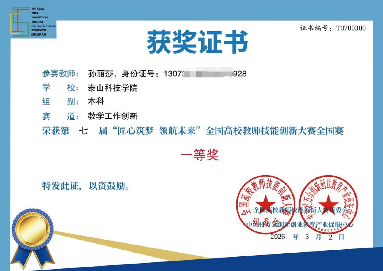 近日,第七届“匠心筑梦 领航未来”全国高校教师技能创新大赛正式公布赛事结果(中创促〔2026〕3号文件)。我院行政管理学院孙丽莎、朱玉聪两位教师,在学校的统筹引领和学院的精心部署下,凭借深厚的教学功底、前沿的育人理念和成熟的创新实践成果,历经初赛、复赛多轮严苛选拔,从全国904所高校、4014名参赛教师中脱颖而出,最终分别斩获全国一等奖、全国三等奖,为学校争得国家级荣誉,为学校“十五五”时期教育教学高质量发展写下亮眼开篇。