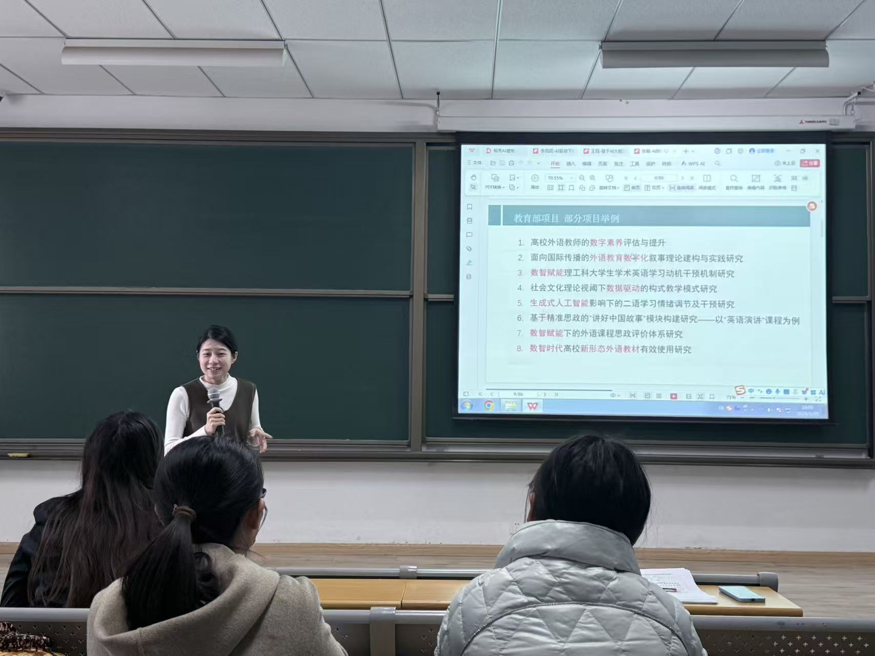 活动伊始,教研室负责人立足当前高等教育数字化发展新形势,结合学校一流本科课程建设工作部署,对标国家级、省级一流课程建设评价标准,围绕课程目标科学设计、教学内容系统重构、教学方法守正创新、学习成效多元评价四大维度,进行了全面系统的解读与阐释。与会教师深入交流后达成共识:人工智能技术的快速迭代,正推动传统课堂教学模式向“以学生为中心、以数据为支撑”的智慧教学模式加速转型,唯有主动顺应教育技术变革浪潮,才能实现专业课程体系与教学模式的深层次、系统性变革。